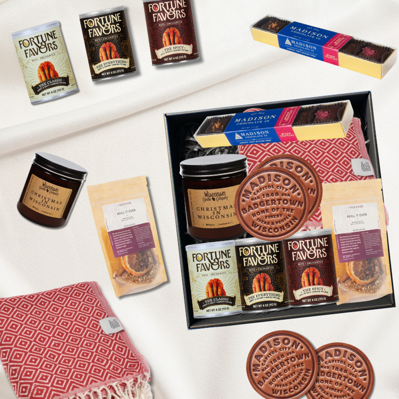 We partner with elite Wisconsin artisans to ensure your gifts have a "Madison soul." We source from local favorites like Fortune Favors to give your recipients a true taste of our community.