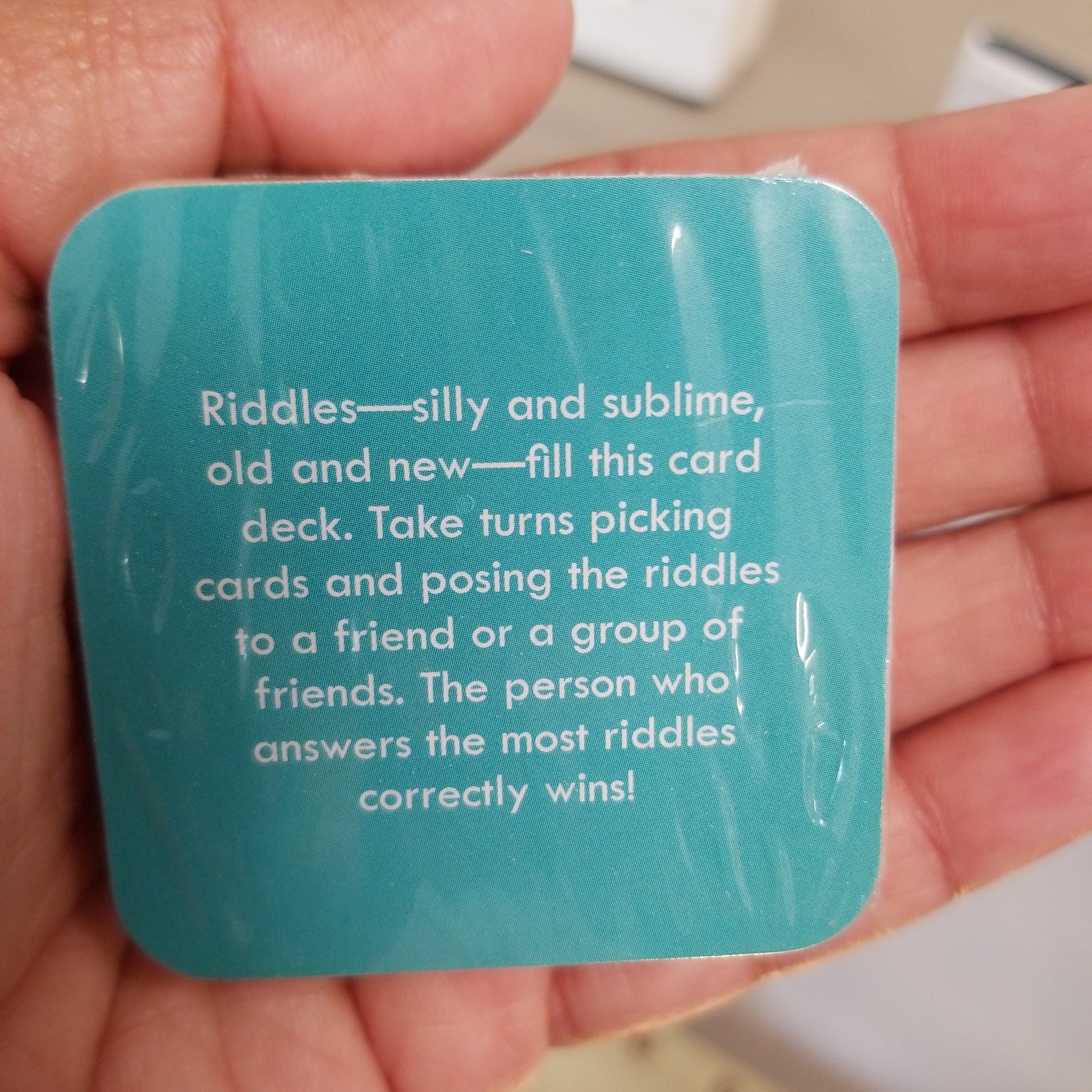 Elevate your gatherings or transform any travel time into an engaging adventure with the "Riddle Me This Card Tin." Packed with 50 clever riddles, this portable tin is the perfect companion for dinner parties, family get-togethers, or road trips. Challenge your mind and share laughs as you solve these amusing puzzles together. Whether you’re looking to spark lively conversations or just pass the time, this collection ensures endless fun and brain-teasing amusement for all ages.