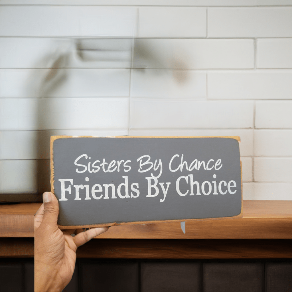 Express the deep connection between sisters with this heartfelt wood sign that reads "Sisters By Chance Friends By Choice." Crafted from high-quality wood, this sign is a perfect piece to celebrate the unique bond shared between sisters. Ideal for gifting or enhancing your own home decor, this sign adds a touch of love and friendship to any space.
